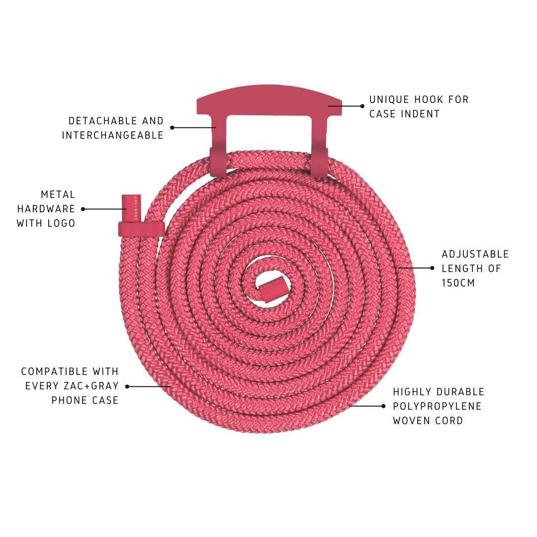 All ZAC+GRAY cases, cords and straps are interchangeable with one another.