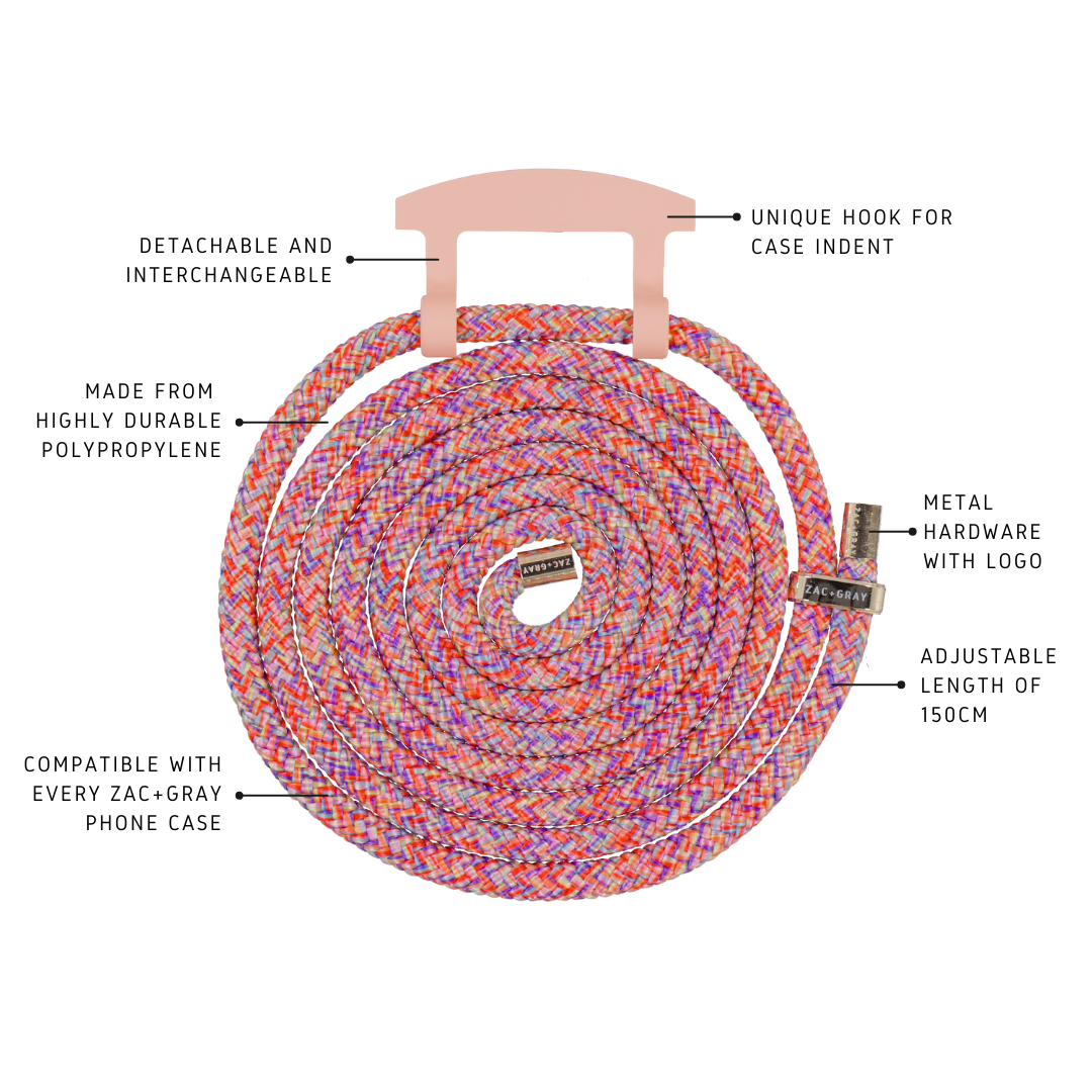 ZAC+GRAY crossbody phone cases offer the most stylish and practical way to carry your phone and keep your hands free. Simply place the hook of the cord or strap into the phone case for crossbody wearing, or quickly and easily convert a crossbody phone case to a standalone phone case by removing the cord or strap.