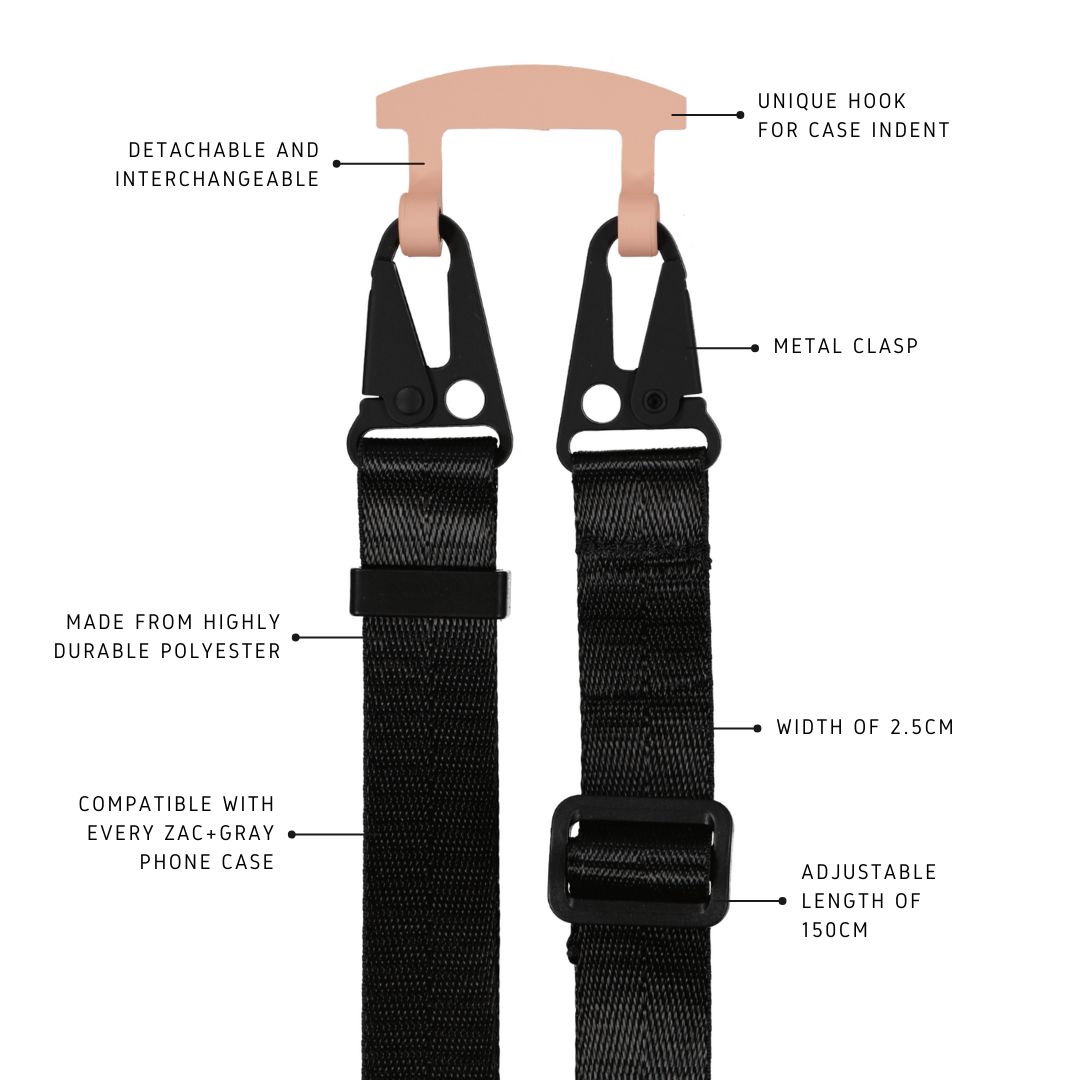 ZAC+GRAY crossbody phone cases offer the most stylish and practical way to carry your phone and keep your hands free. Simply place the hook of the cord or strap into the phone case for crossbody wearing, or quickly and easily convert a crossbody phone case to a standalone phone case by removing the cord or strap.