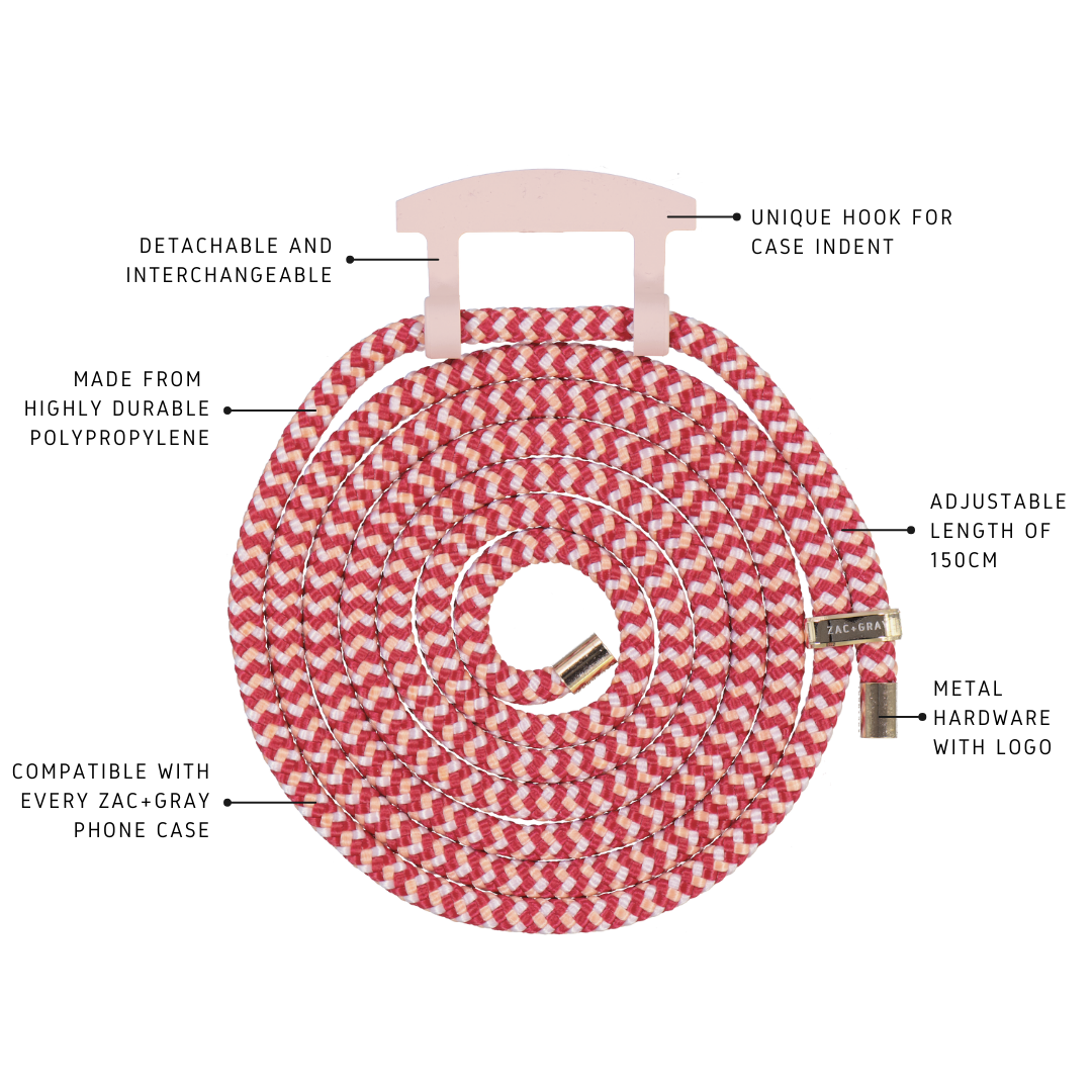 ZAC+GRAY crossbody phone cases offer the most stylish and practical way to carry your phone and keep your hands free. Simply place the hook of the cord or strap into the phone case for crossbody wearing, or quickly and easily convert a crossbody phone case to a standalone phone case by removing the cord or strap.