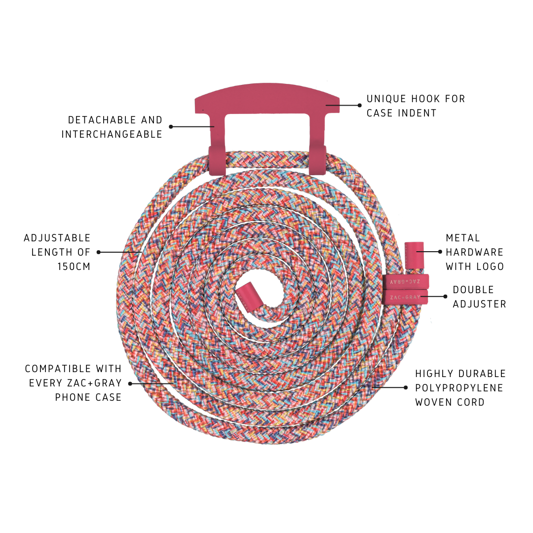 All ZAC+GRAY cases, cords and straps are interchangeable with one another.